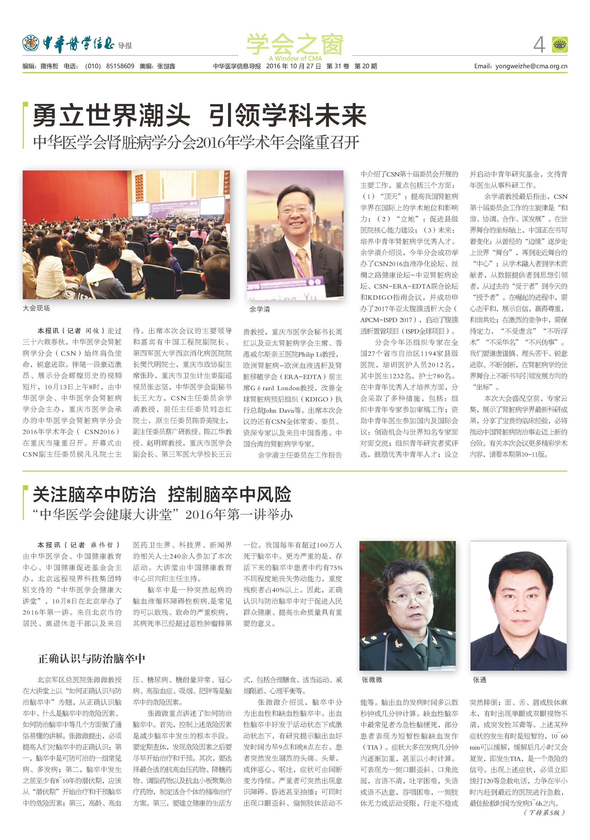2016年中华医学会肾脏病学分会学术年会
