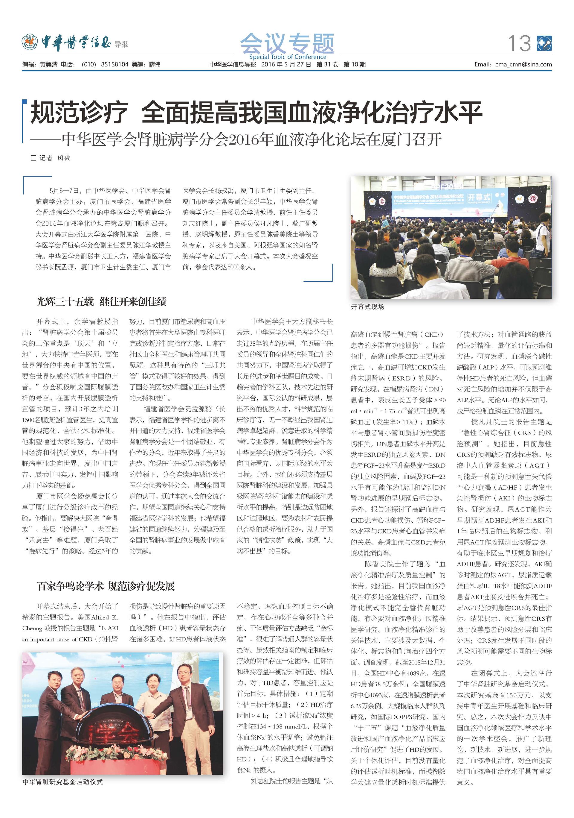 2016中华医学会肾脏病学分会血液净化论坛