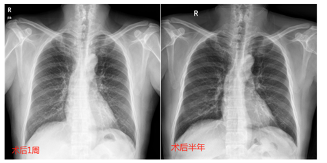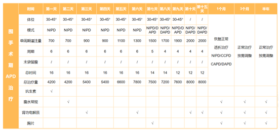 术后1-3天,予以半卧位APD治疗,单周期700-800ml,末次干腹;术后4-5天半卧位APD治疗,单周期1000ml,术后6-9天半卧位CAPD治疗,单周期1200ml,术后10-14天半卧位CAPD治疗,单周期1500ml(图3)。术后10天患者康复出院,继续居家行腹膜透析治疗,逐渐增加留腹量,规律随访未再出院胸腹瘘症状(图4)。
